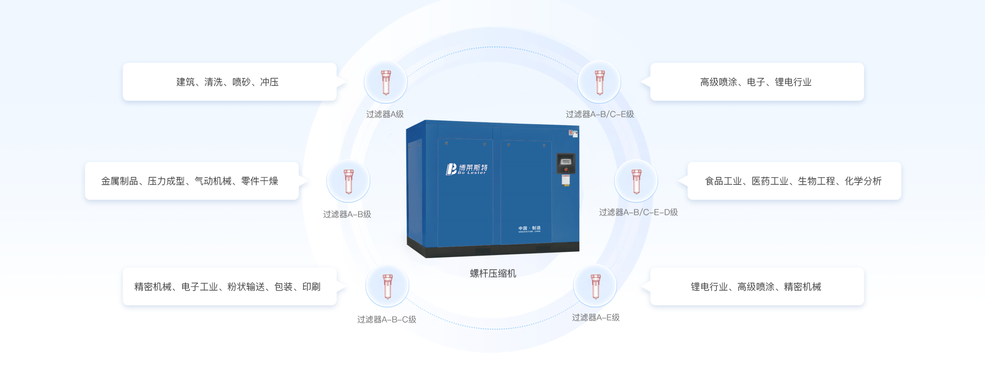 專業從事螺桿式壓縮機、冷凍式干燥機、吸附式干燥機、真空泵、高精密過濾器等空氣動力系統設備研發、生產、銷售、維護于一體的節能壓縮
